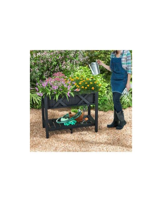Create a Flourishing Garden and Keep Your Lovely Plants Thriving!Our Hips raised garden bed measures 34'' x 18'' x 29'' (L x W x H) and comes with an 7'' deep planter box, which is suitable for cultivating various plants. And there exists a bottom storage shelf, allowing you to conveniently store your gardening tools, watering pots, and flowerpots, keeping items within reach. Besides, in contrast to normal wooden raised garden beds, our premium Hips raised garden bed could withstand various weather conditions and ensure that it will not fade, rot, or crack, guaranteeing a lifespan of 5-10 years. This elevated planter box also ensures better stability when filled with soil and plants.Features:Crafted of 100% Hips material, not easy to fade, crack, or rot, ensuring longevityThe premium Hips raised garden bed ensures a lifespan of 5-10 yearsThe bottom crossbars ensure that the structure remains strong and stable