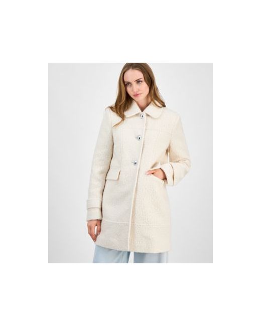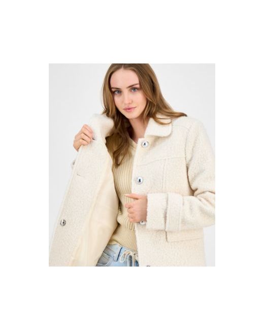 Women's Beige Juniors Button-Front Boucle Coat
