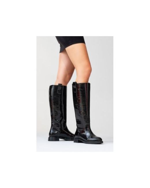 A sophisticated over-the-knee boot featuring a faux leather upper with a subtle snake print design, warm lining, and a durable Tpu sole, designed for both style and comfort.
