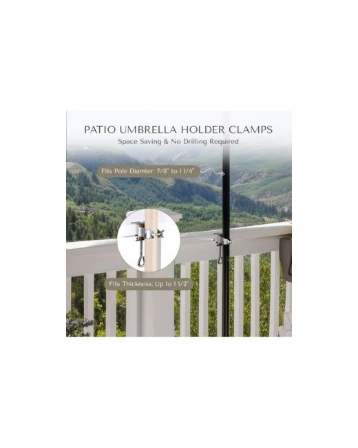 Women's Silver 2 Pack Portable Deck Umbrella Mount Clamp Stand Holder for Outdoor Balcony Railing Bench Fence Mobile Cart