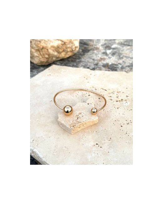 The Adornia Gold Spheres Cuff features a bold, open design capped with polished gold spheres that add a playful yet elegant touch. Its smooth finish and modern silhouette make it a versatile piece to dress up or down.