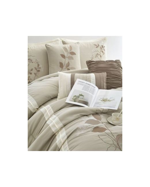 This 7-piece comforter set creates a contemporary and seamless appearance that refreshes your bedroom. The set consists of one comforter, two matching shams, one bed skirt and three decorative pillows with a delicate ruffled stitching and flower patterned design to complete the look.