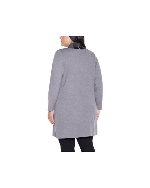 Women's Gray Plus Black Label Scarf-Effect Open-Front Coatigan Sweater