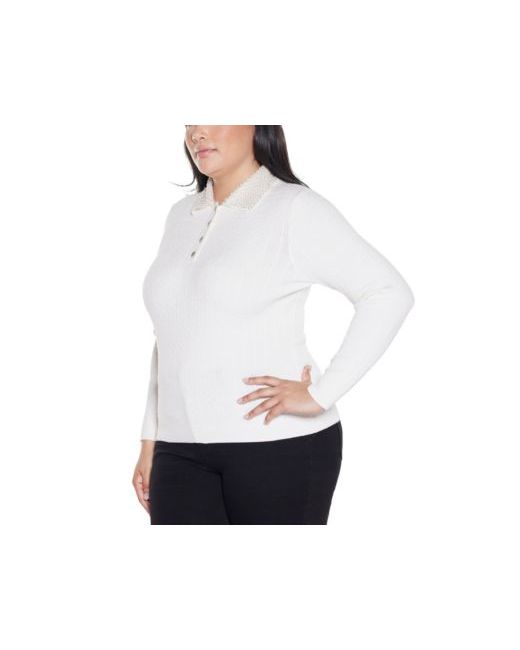 Women's White Plus Black Label Beaded Collar Sweater