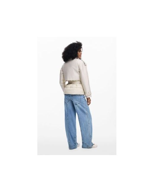 Regular-fit jacket made of two materials, upper part with smooth cotton fabric and lower part in quilted material