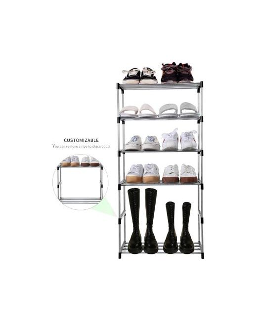 Space-Saving Shoe Rack – This easy-assembly rack (17.2"×10.3"×14.6") features stackable plastic+galvanized pipes, holding 6 pairs of shoes/boots. Perfect for dorms, entryways, or bathrooms.