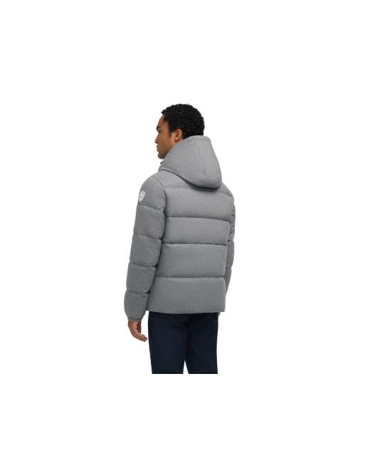 The Kepler Wool-Like Puffer features a removable hood, a water-repellent finish, sleek chest and side pockets. Designed for warmth, it combines a straight fit with snug storm cuffs for easy layering.