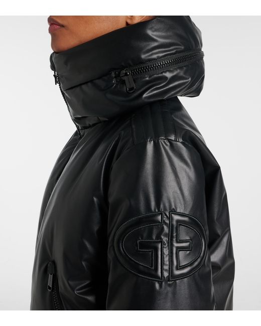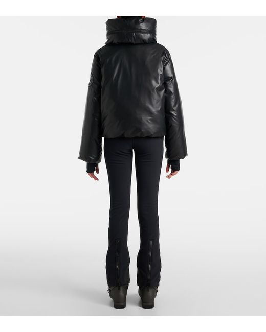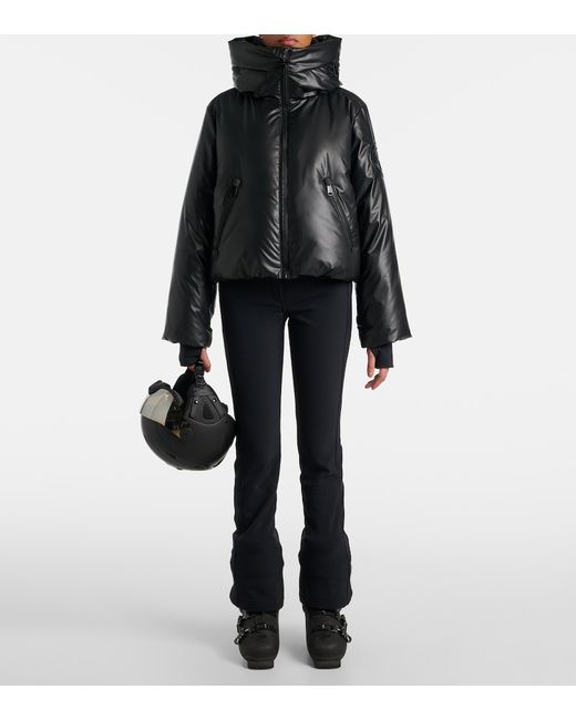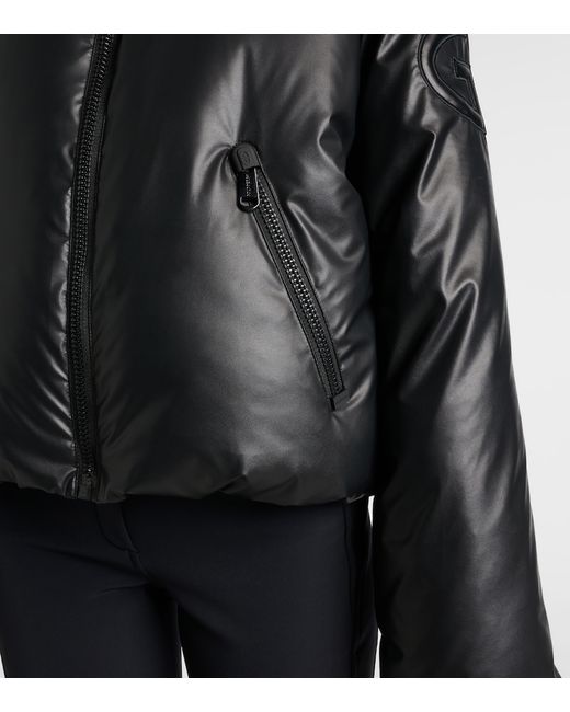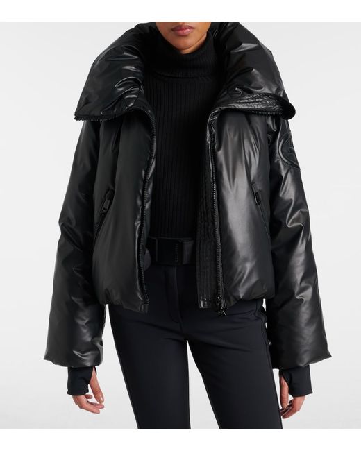 Material: 60% polyester (recycled), 40% polyurethane. Care instructions: specialist clean. Made in Hong Kong. Designer color name: Black. Item color: black. Regular fit. Closure: zipped front. Lining: 58% polyester, 42% polyester (recycled). Filling: 90% down, 10% feathers. Filling II: 100% polyester. Pockets: zipped pockets, internal pockets, ski-pass pocket. Concealed hood.
