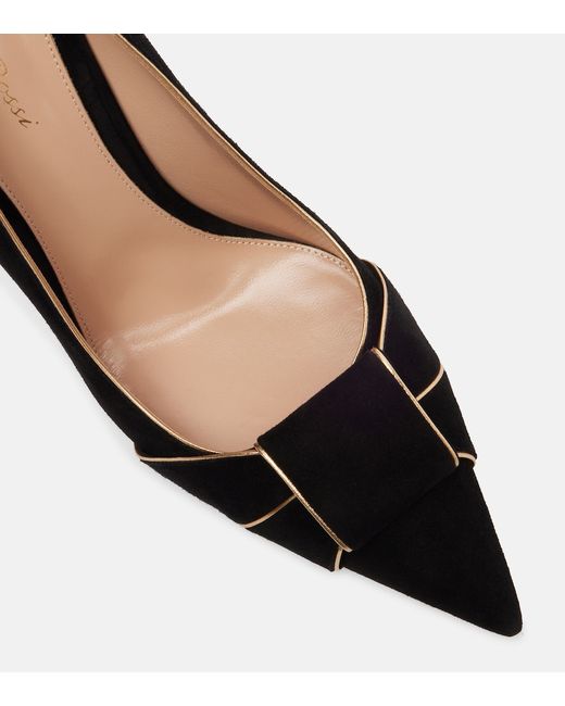 Upper: lamb leather (suede). Lining: leather. Sole: leather insole and sole. Toe shape: pointed toe. Made in Italy. Includes: shoe box, dust bag. Designer color name: Black+Mekong. Item color: black, gold.