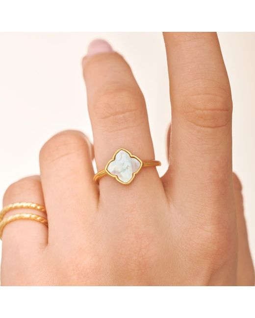 Gold Mother of Pearl Cubic Zirconia Halo Clover Ring