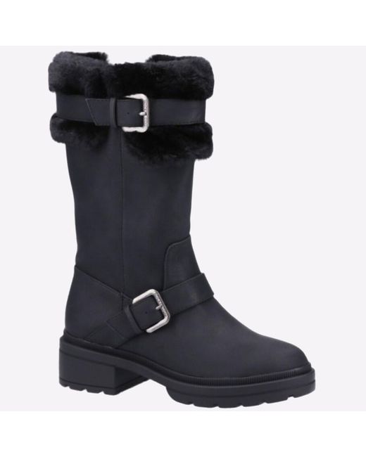 Choose Igloo in black and you know you've got a winter boot that'll complement everything in your wardrobe. Skinny jeans? Go for it. Dress and tights? It's a knockout.-Buckled Tall Boot -Rocket Dog women's boot -Black Santee PU and Albion faux fur upper -Fleece lined upper for added warmth -Plush foam comfort insole -Flexible and durable lug sole construction -Fur and buckle upper details.