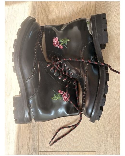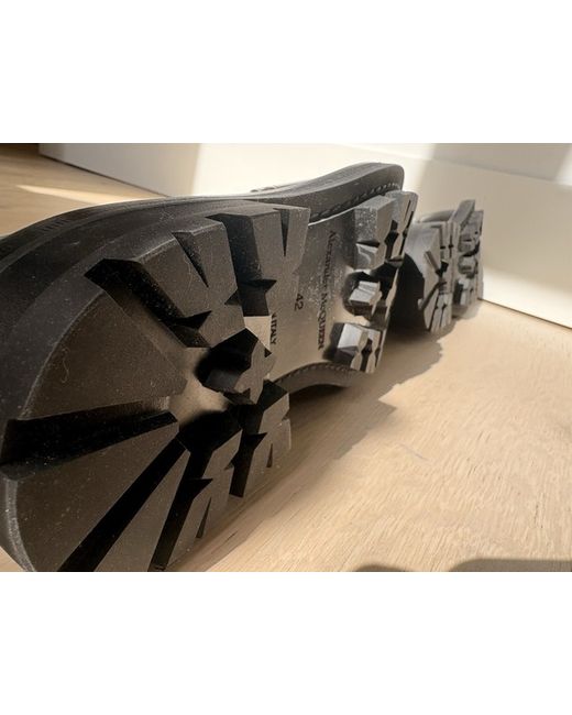These Alexander McQueen ankle boots in black leather are like new, never worn. With a lace-up closure and a standard shoe width, they are perfect for casual occasions. Made in Italy, these stylish booties feature a unique flower theme and metal details, adding a touch of luxury to any outfit. The leather lining and insole provide comfort and durability, making these boots a versatile and fashionable addition to any wardrobe.