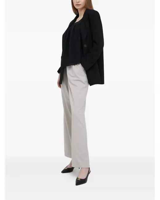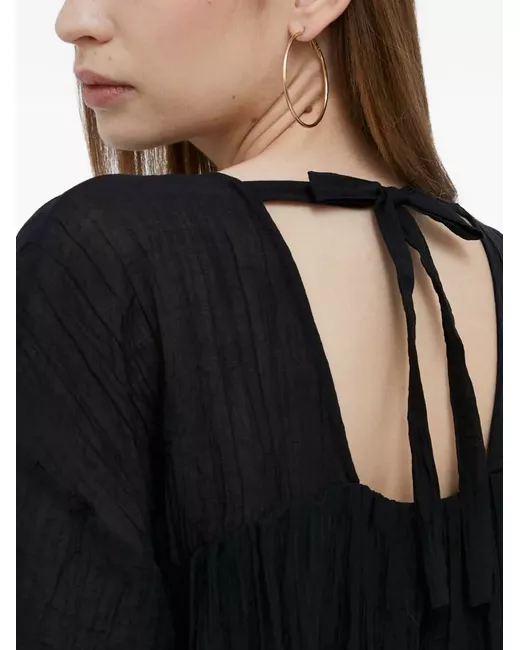 black textured finish tie fastening V-neck three-quarter sleeves gathered detail
