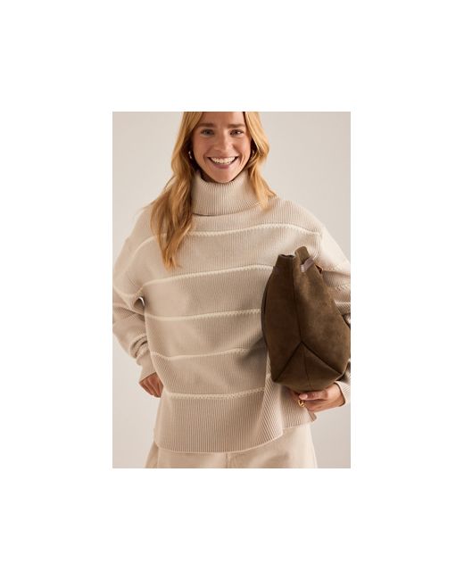 By Varley 42% Viscose, 30% Polyester, 20% Nylon, 8% Lyocell Pullover styling Roll neck Split at back of neck and side seams Machine wash Imported Hamish Roll-Neck Jumper Top by Varley in Beige Size: 2XS, Polyester/Nylon/Viscose at Anthropologie