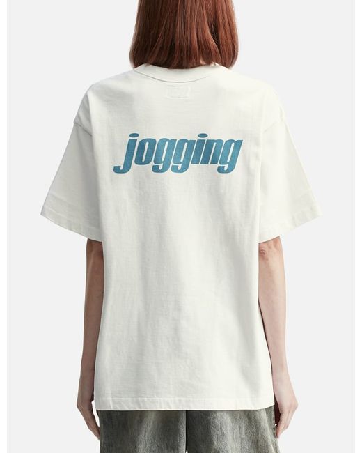 UnlikelyUnlikely Authentic Graphic Tee "jogging"Loose fitMade of tightly woven, sturdy jersey fabricExtra-wide binder neckline made with custom binding-sewing equipmentShort sleeve"Jogging" print on chest and backColor: White