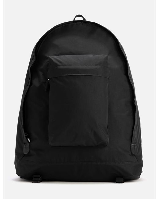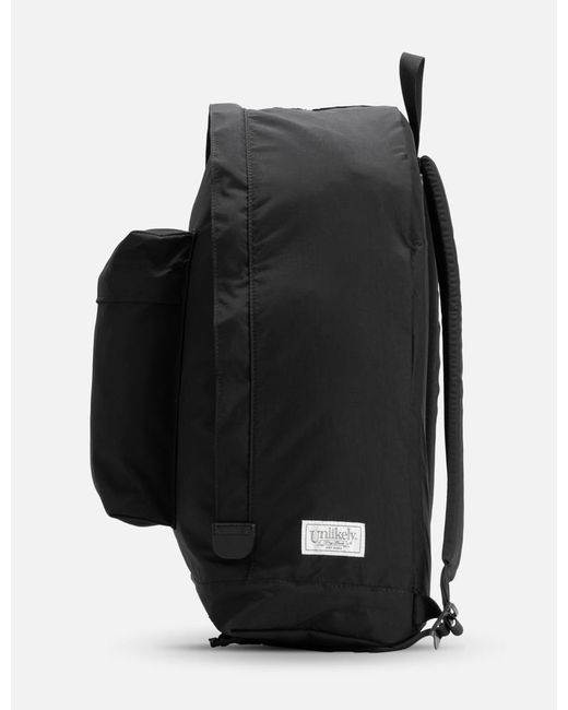 UnlikelyUnlikely ”Equipment” 2Day Back PackMade of water-repellent nylon taffetaTriangular shapedTop handleZipper closuresWide-opening main compartmentInternal sleeve pocketFront compartment with inner pocketsPadded shoulder strapsLogo woven label on sideAdjustable bottom strapsCow leather detailsMade in JapanColor: Black