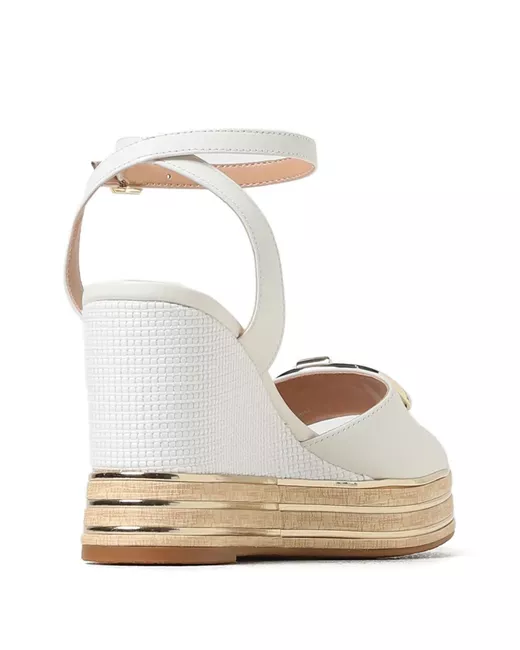 white buckle detail ankle strap platform sole wedge heel gold-tone hardware