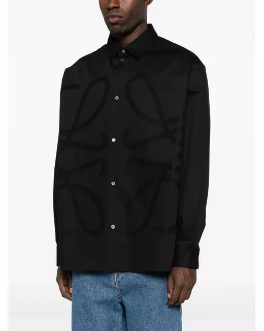 black long sleeves front button fastening embossed logo pattern classic collar cotton
