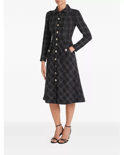 black check pattern gold buttons collared neckline long sleeves flap pockets