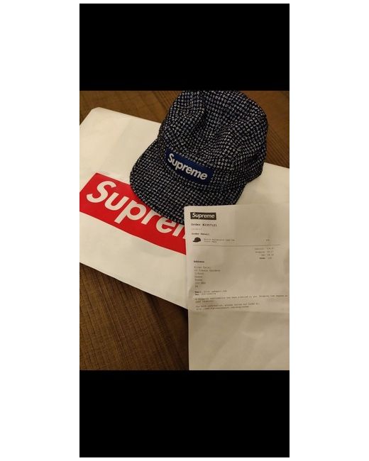 The Supreme Boucl Houndstooth Camp Cap is a stylish and versatile accessory for men, perfect for casual occasions during the summer season. Made from cotton in a classic blue colour, this one-size cap features an adjustable strap for a comfortable fit. Branded by Supreme, it embodies a cool and laid-back style that is ideal for everyday wear. Made in the United States, this camp cap combines quality craftsmanship with a trendy design, making it a must-have piece for any streetwear enthusiast.
