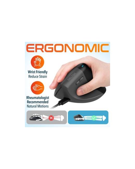 Elevate your productivity with the Delton S38 wired ergonomic mouse crafted for precision and allday comfort Its vertical design reduces wrist strain and supports healthier hand movements recommended by rheumatologists Featuring 3 adjustable Dpi settings 80012001600 this mouse for laptop ensures precise tracking for gaming browsing or professional tasks The smooth 3D scroll wheel and intuitive