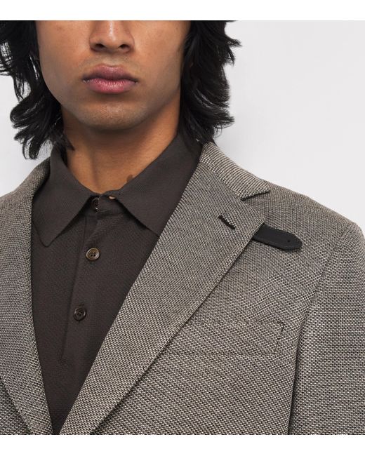 Designed to be lightweight for effortless warm-weather wearing or for layering in the cooler months, this blazer by Brioni is made from a blend of wool and gots-certified silk. The unlined piece has a high waistline and a narrow lapel with a leather tab that gives a contemporary feel to this piece.