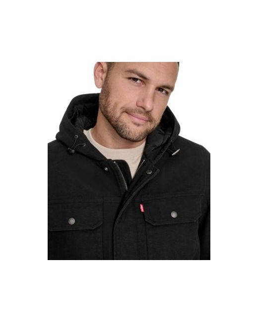 Stay effortlessly stylish and ready for any weather with this versatile utility jacket. Designed for comfort and function, this jacket features a durable dual closure, both zipper and snap, adjustable cord locks at hood, two snap-flap chest pockets, and two spacious side pockets for all your essentials. Dont forget the quilted hood and body for extra warmth, the perfect item to add to any fall closet.