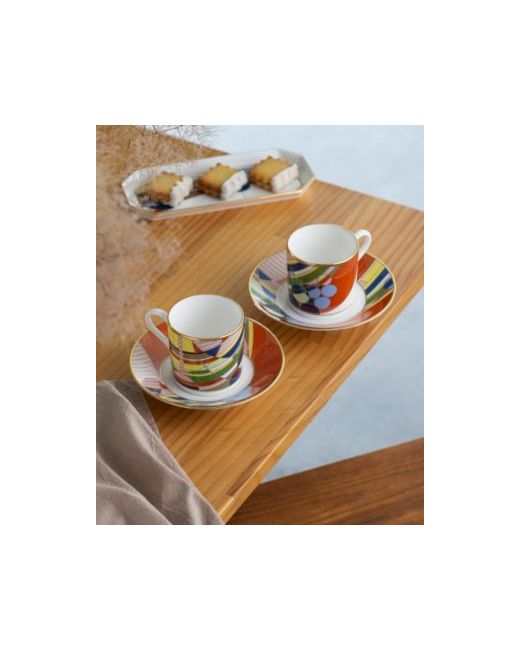 Savor sophistication with this Noritake Frank Lloyd Wright Imperial Cabaret Mug, featuring a striking design of vibrant overlapping circles. Gift boxed for a seamless giving experience, suitable for collectors or regular use.
