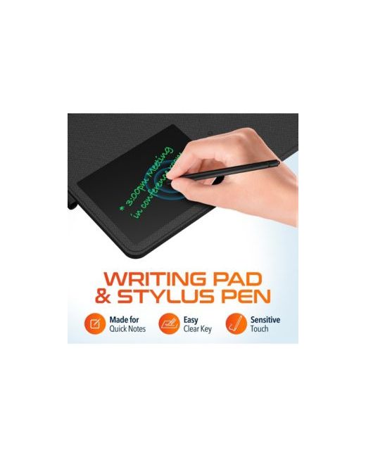 Stay productive, organized, and powered up with the Delton D101 desktop workstation that features a smooth nonskid mouse pad, a wireless charging pad, erasable digital notepad, and a phone stand.