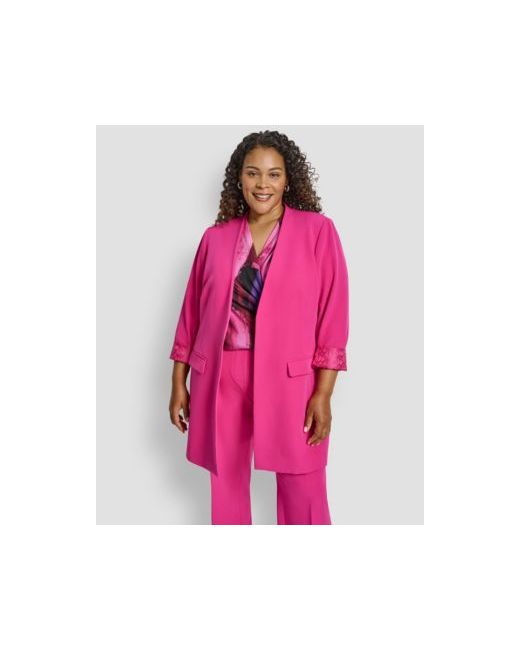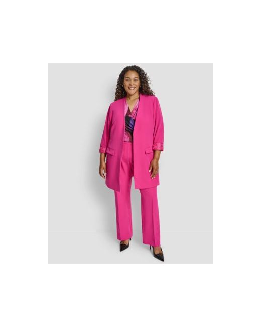 Streamlined and collarless, this Dkny jacket offers a polished, modern silhouette. Open-front design, shoulder padding, long sleeves, and practical pockets combine for effortless style and function.