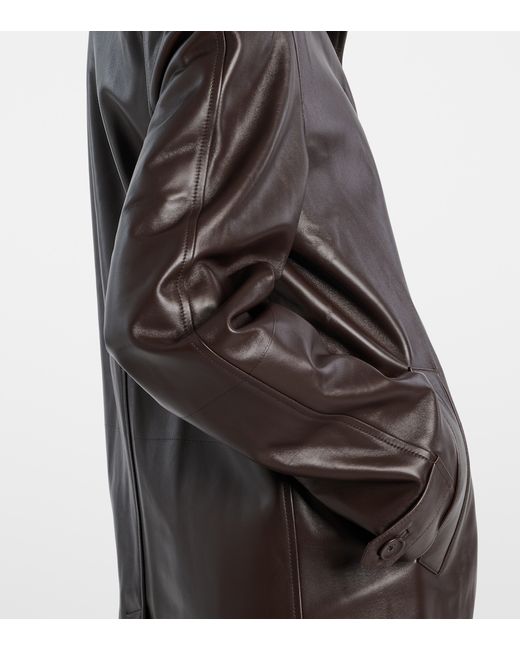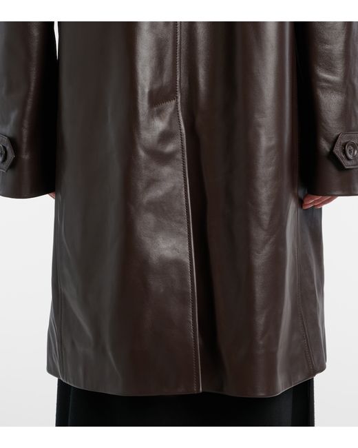 Material: 100% lamb leather. Care instructions: specialist clean. Made in Italy. Designer color name: Brown. Item color: brown. Lining: 100% silk. Pocket lining: 55% silk, 45% cashmere. Leather. Notched lapel. Cuff: tab cuff. Pockets: slant pockets. Closure: concealed button placket. Vent: single.