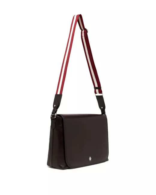 chocolate brown leather striped shoulder strap logo detail flap top silver-tone hardware