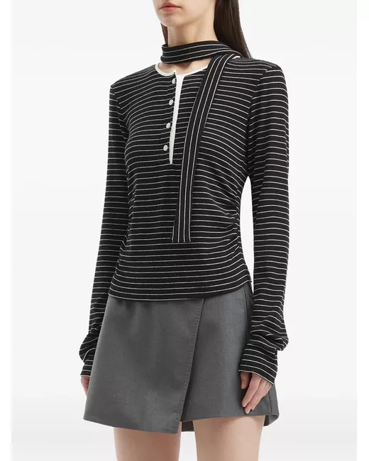 black striped button fastening long sleeves round neck