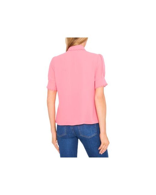 CeCe Scalloped Button Front Blouse.Color:Confetti Pink.Size:L.Material:Shell & lining: 100% polyester.Tops.