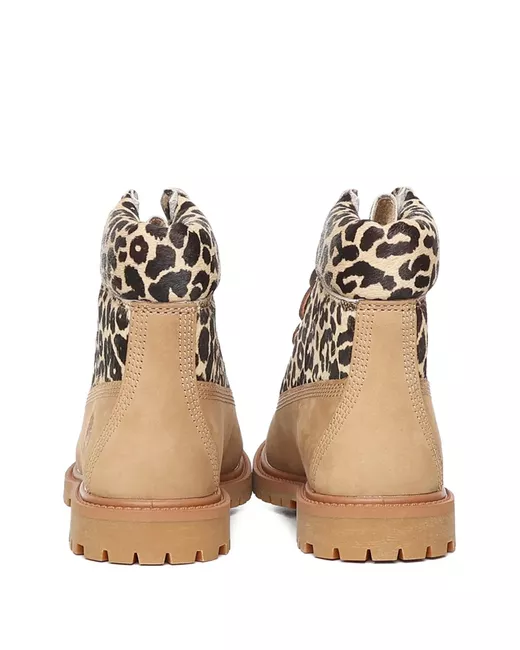 beige leopard print lace-up fastening round toe ridged rubber sole logo detail