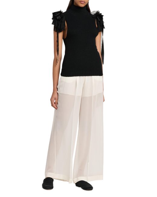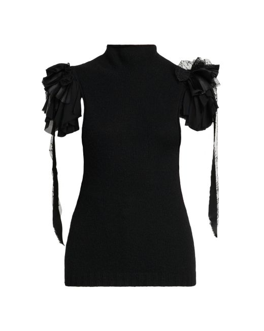 This top from Alberta Ferretti is crafted of a cashmere and wool blend and features a mock turtleneck and exaggerated layered ruffles and lace at the shoulders. Mock turtleneck Short sleeves Pulls over 90% cashmere/10% wool Dry clean Made in Italy SIZE & FIT Model measurements: 5'10" tall Model is wearing a US size 4. Designer Evening - G24 Consignment > Alberta Ferretti > Saks Fifth Avenue. Alberta Ferretti. Color: Black. Size: 4.