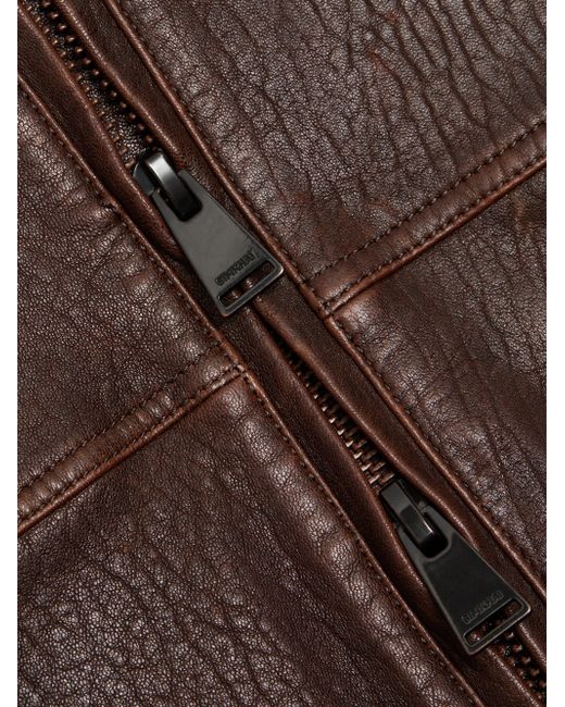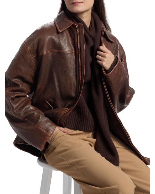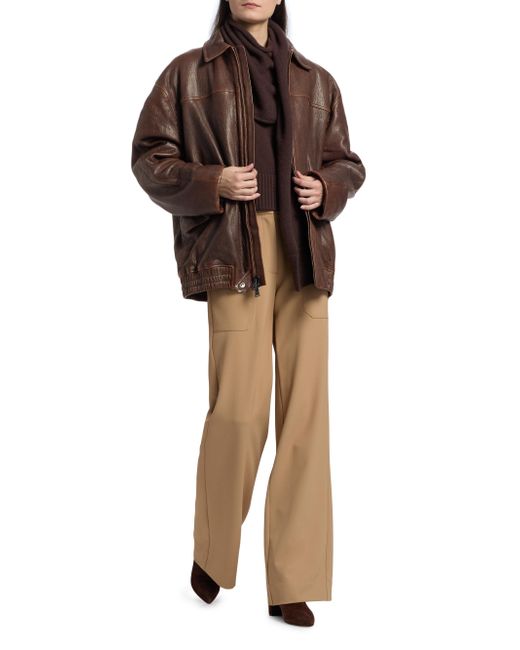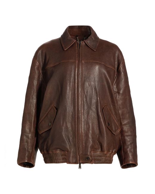 Crafted of leather, SIMKHAI's Huntington oversized jacket features a spread collar, long sleeves, and front snap flap pockets. Spread collar Long sleeves Front flap pockets 100% leather Lining: 51% viscose/49% cotton Professional leather clean Imported SIZE & FIT About 29 '' from shoulder to hem Model measurements: 5'10" tall Model is wearing a US size Small. Contemporary Sportswear - Workshop > Simkhai > Saks Fifth Avenue. SIMKHAI. Color: Distressed Chocolate. Size: XS.
