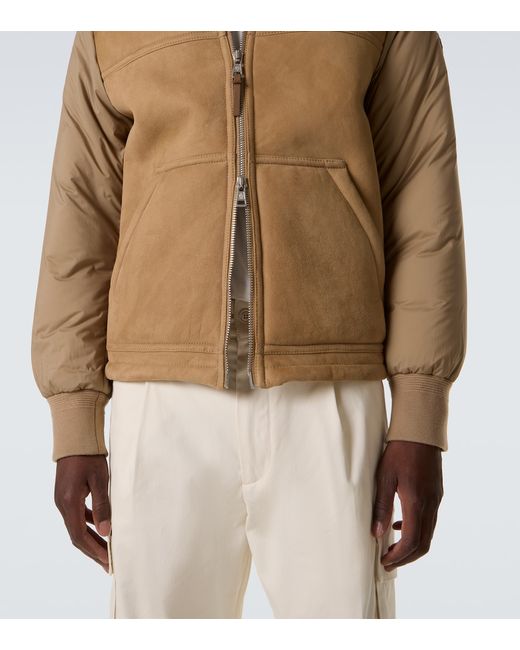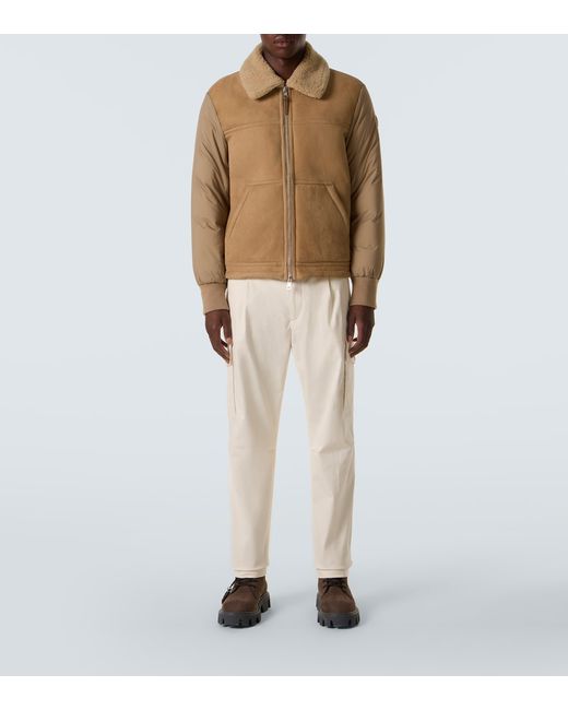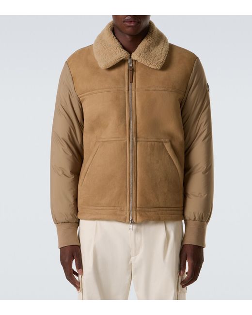 Material: 100% polyamide. Care instructions: dry clean. Made in Romania. Designer color name: Elmwood. Item color: beige. Lining: 100% polyamide. Sleeve lining: 100% polyamide. Filling: 90% down, 10% feathers. Insert: 100% cow leather. Contains non-textile parts of animal origin. Material II: 100% lamb leather. Closure: zipped front. Pockets: kangaroo pocket. Cuff: elasticated.