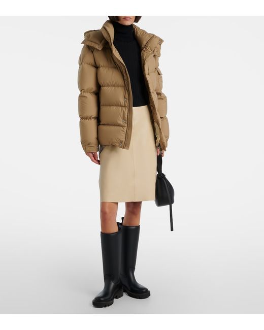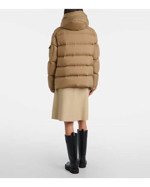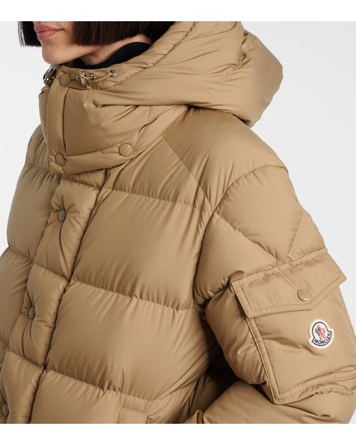 Material: 100% polyester. Care instructions: hand wash. Made in Moldova. Designer color name: 23F. Item color: beige. Hardware color: silver. Lining: 100% polyester. Other inner trims: 100% polyester. Filling: 90% down, 10% goose feathers. Contains non-textile parts of animal origin. Detachable drawstring hood. Cuff: buttoned. Pockets: zipped pockets, sleeve pocket, internal pocket. Closure: two-way zipped front with snap-button fastenings. Drawstring at the hem for adjustable fit.