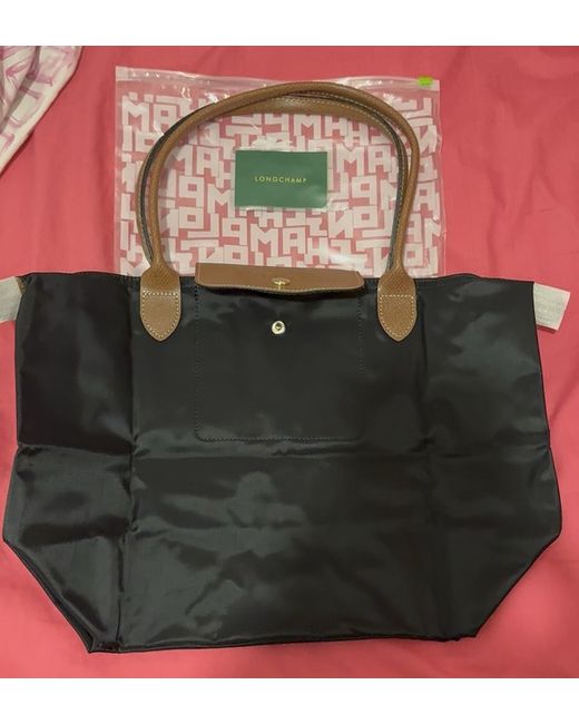 The Longchamp Handbag Large is a stylish and practical accessory for women. With a spacious interior measuring 31cm in width, 19cm in depth, and 30cm in height, this tote-style bag is perfect for carrying all your essentials. The black nylon exterior with gold accents and embroidered details adds a touch of elegance, while the matte finish gives it a sleek look. The bag features a zip closure, double handles made of leather, and a pouch accessory for added convenience. Made in France with high-quality materials, this Longchamp handbag is a versatile choice for casual occasions.