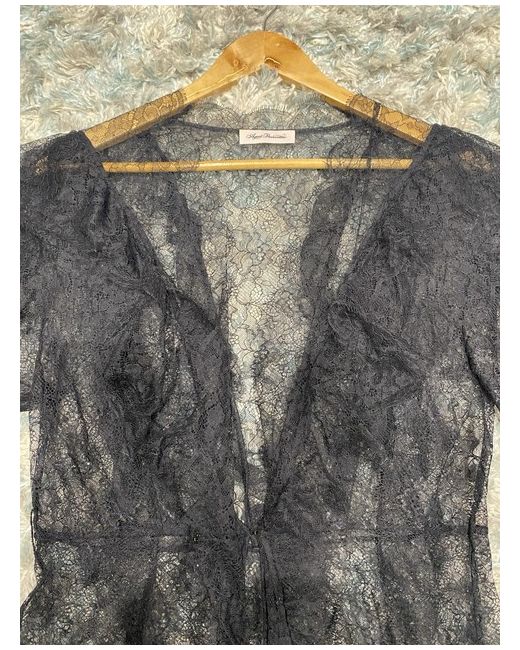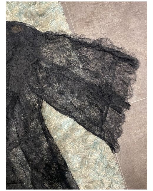 The Agent Provocateur Black Lace Ruffled Dressing Gown in size 12 is a stylish and elegant piece perfect for lounging in the summer or spring. This gown features a floral pattern on delicate lace fabric, with a V-neckline and 3/4 sleeves for a flattering silhouette. The ruffled detailing adds a touch of sophistication to this kimono-style gown from the well-known Agent Provocateur brand. Made from high-quality lace material, this dressing gown exudes a chic and timeless appeal. Length good if you are 5ft 6” or above.