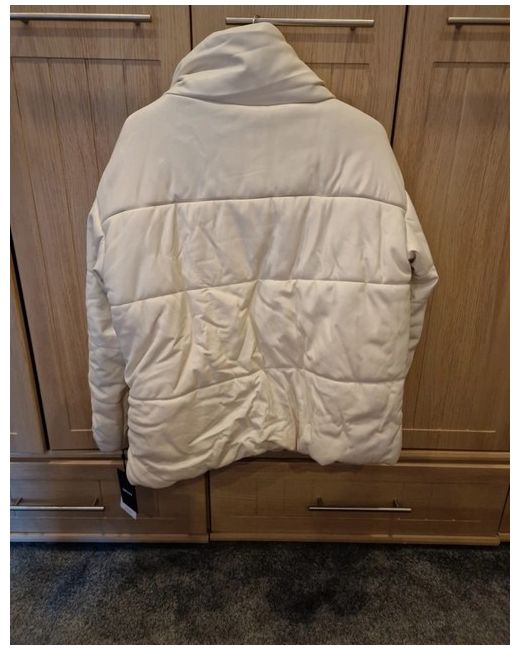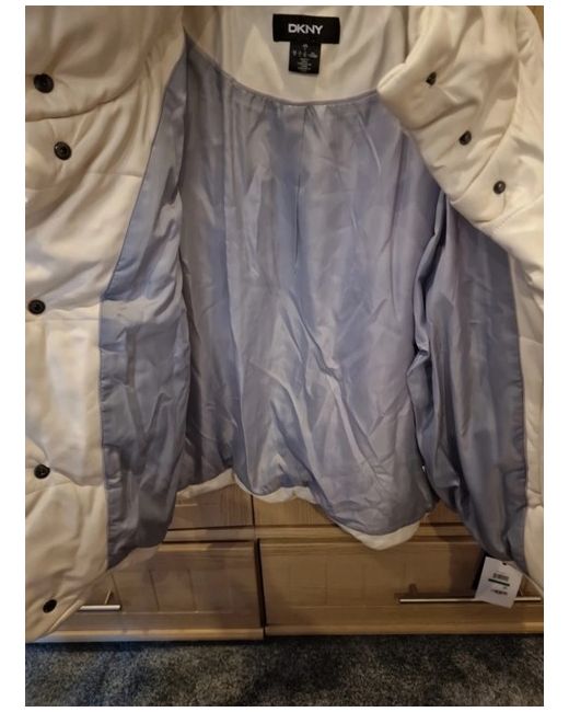 The DKNY Women's Quilted Puffer Jacket in size L is a stylish and practical choice for women looking for a versatile coat. Made from faux leather with a quilted design, this beige coat is perfect for adding a touch of sophistication to any outfit. The regular fit and quality construction make it a must-have addition to any wardrobe, ideal for both casual and smart-casual occasions.