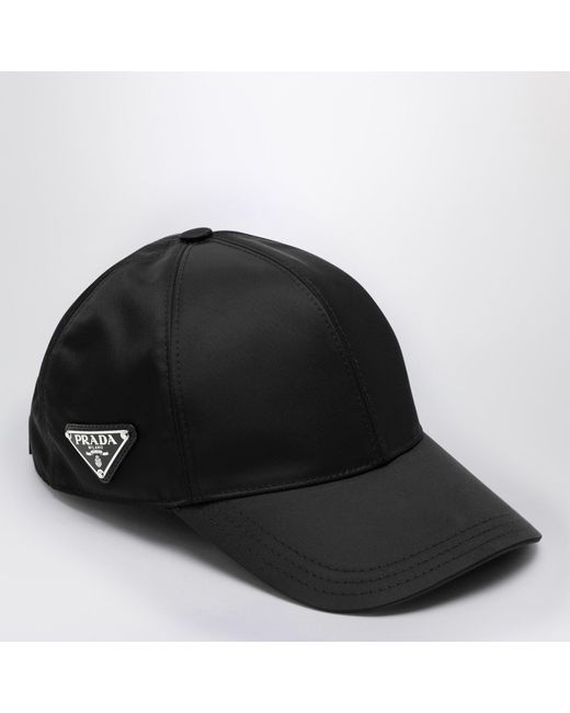 Visor hat from Prada in black Re-Nylon, featuring an adjustable hook-and-loop fastening at the back, cotton lining and an enamelled metal triangle logo on the side.