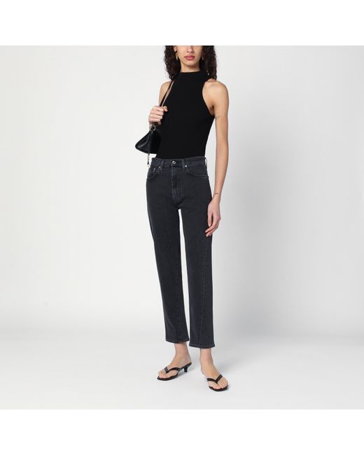 Sleeveless tank top by Roberto Collina in black cotton, characterized by ribbed design and high collar.