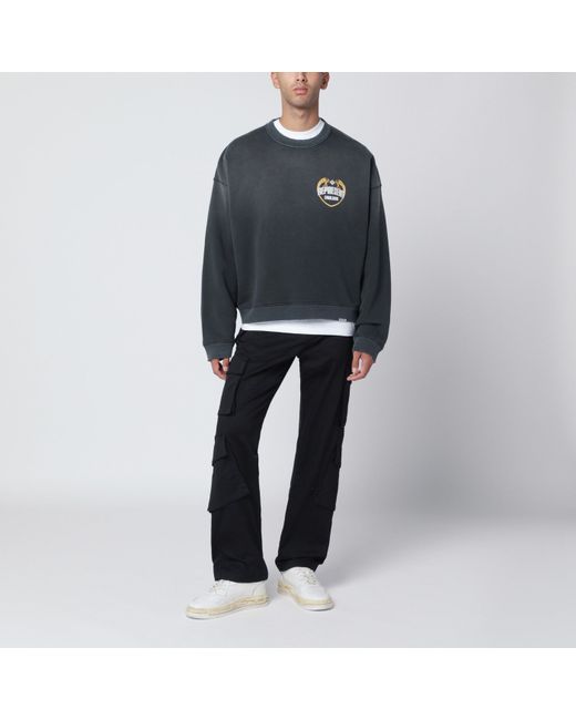 Represent black cotton trousers, featuring front closure, belt loops, four applied cargo flap pockets, two back patch pockets and two side welt pockets.