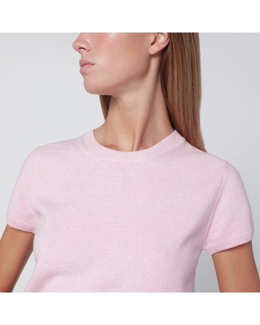 Dunst round-neck sweater in pink wool blend, featuring short sleeves and ribbed edges.