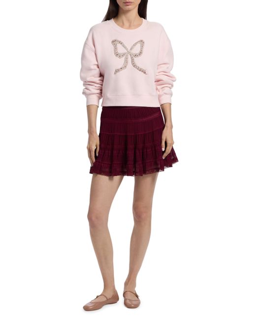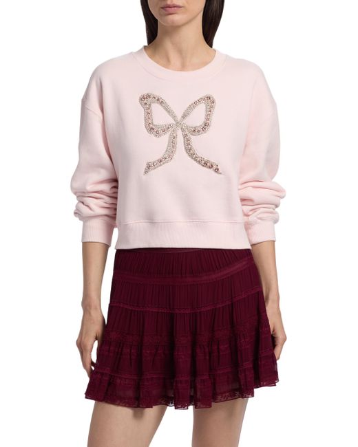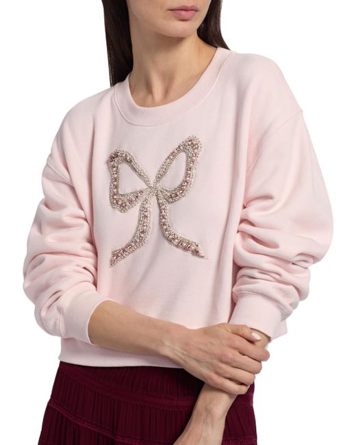 This Rylan sweater from LoveShackFancy is crafted of a cotton blend and designed with an embellished bow. Crewneck Drop shoulders Long sleeves Rib-knit trim Pulls over 58% cotton/42% polyester Dry clean Imported SIZE & FIT About 19.5" from shoulder to hem Model measurements: 5'10" tall Model is wearing a US size 4. Contemporary Sportswear - Trend > Loveshackfancy > Saks Fifth Avenue. LoveShackFancy. Color: Wistful Pink. Size: XXS.