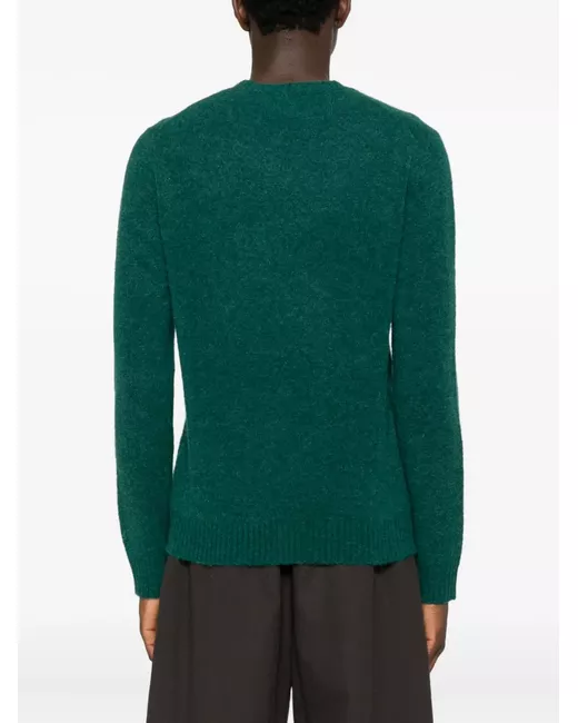 green alpaca wool crew neck long sleeves ribbed cuffs and hem