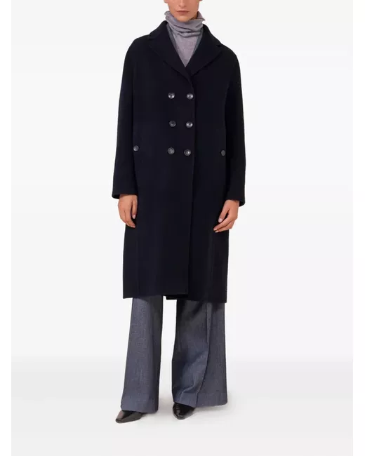 dark blue double-breasted button fastening notched lapels long sleeves front flap pockets
