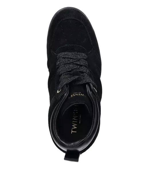 black ankle height pull-tab at the heel lace-up fastening round toe ridged sole